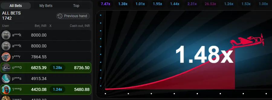 Experienced players also recommend keeping an eye on the history of odds. If a series of small coefficients lasts for a long time, a large multiplier will soon appear. However, you should keep in mind that from the point of view of probability theory, the chances that the next round will have small or large odds are the same, regardless of the past results.